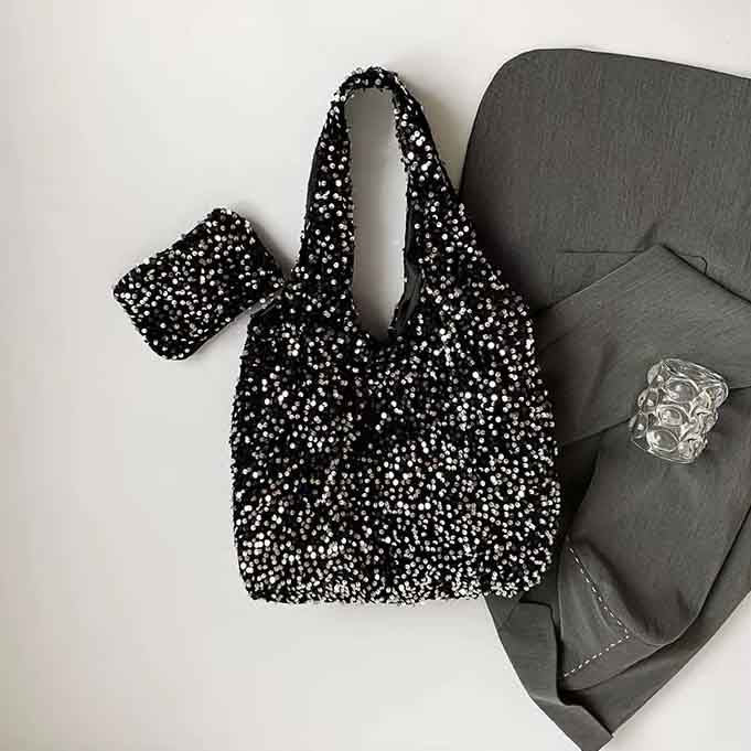 Ce sac cabas argenté à sequins séduit par son style moderne, chic et résolument glamour. Spacieux et fonctionnel, il permet de transporter facilement tous vos essentiels du quotidien : sac à main, téléphone, portefeuille, maquillage ou documents. Sa pochette argent pailletée offre un rangement pratique et élégant pour vos petits objets. Idéal pour le shopping, le travail, les soirées ou les occasions spéciales, ce sac sequin femme s’adapte à tous les styles.